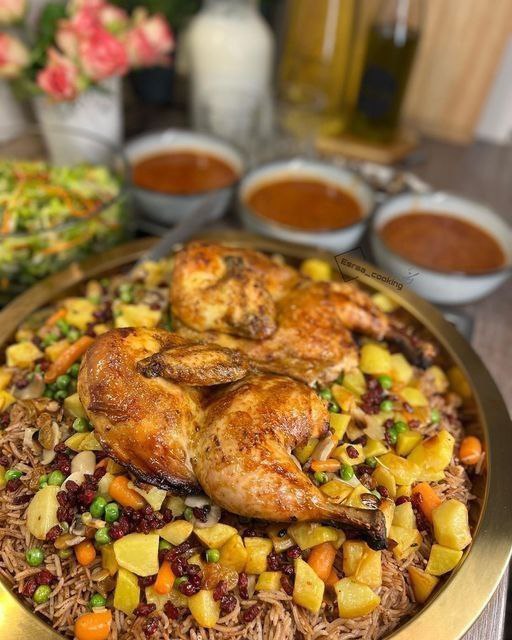 يُعتبر البرياني طبقًا مميزًا يتكون من الأرز والخضروات، وعادة ما يحتوي على أحد أنواع اللحوم مثل “الدجاج، لحم الضأن، أو لحم البقر”، بالإضافة إلى بهارات خاصة تعطيه المذاق والطعم الفريد.