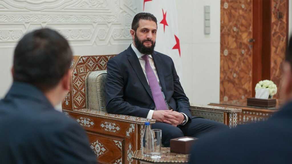 رئيس الجمهورية السيد أحمد الشرع يلتقي في قصر الشعب وفدًا لرجال أعمال من جمهورية الصين الشعبية برئاسة السيد تشو ليجانغ المدير العام لشركة AOJ-TECHNOLOGY في منطقة الشرق الأوسط، حيث جرى خلال اللقاء بحث آفاق الاستثمار في سوريا، كما تم التأكيد على حرص الحكومة السورية على تهيئة مناخ استثماري جاذب يقوم على الشفافية والاستقرار.