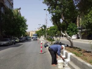 تواصل شعبة الصيانة في مجلس مدينة حلب تنفيذ أعمال تجميل الأرصفة في حي السليمانية، حيث يتم دهن الأرصفة بألوان واضحة وتنظيم الحركة المرورية.