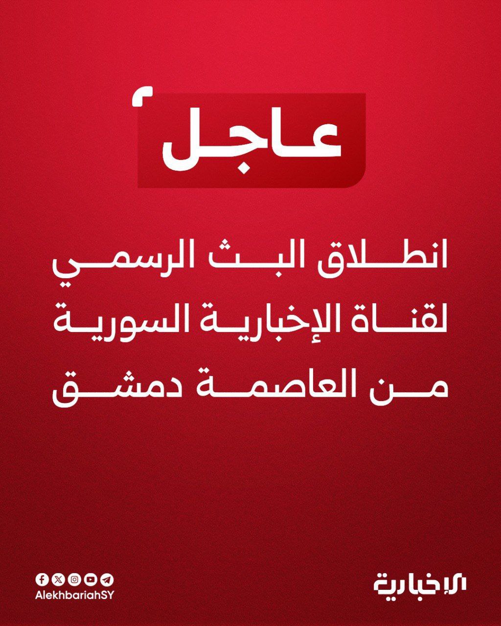 انطلاق البث الرسمي لقناة الإخبارية السورية بهويتها البصرية الجديدة، على قمر “النايلسات” وفق الترددين 12303 H 27500 و11938 V 27500، والقمر “سهيل سات” على التردد 11310 بالإضافة لتقنية الـ IPTV ومنصات على السوشال ميديا الخاصة بالقناة عين الجماهير On مايو 5, 2025 Share #صحيفة_الجماهير Share FacebookTwitterGoogle+ReddItWhatsAppPinterestالبريد الإلكتروني