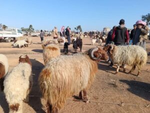 رغم الارتفاع الملحوظ في أسعار المواشي في سوق مدينة مسكنة اليوم شهد السوق إقبالا كبيراً من المواطنين على شراء كافة الأصناف المتاحة.