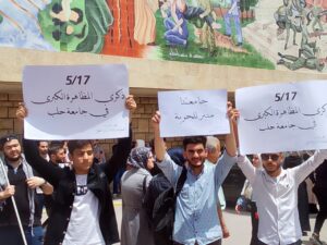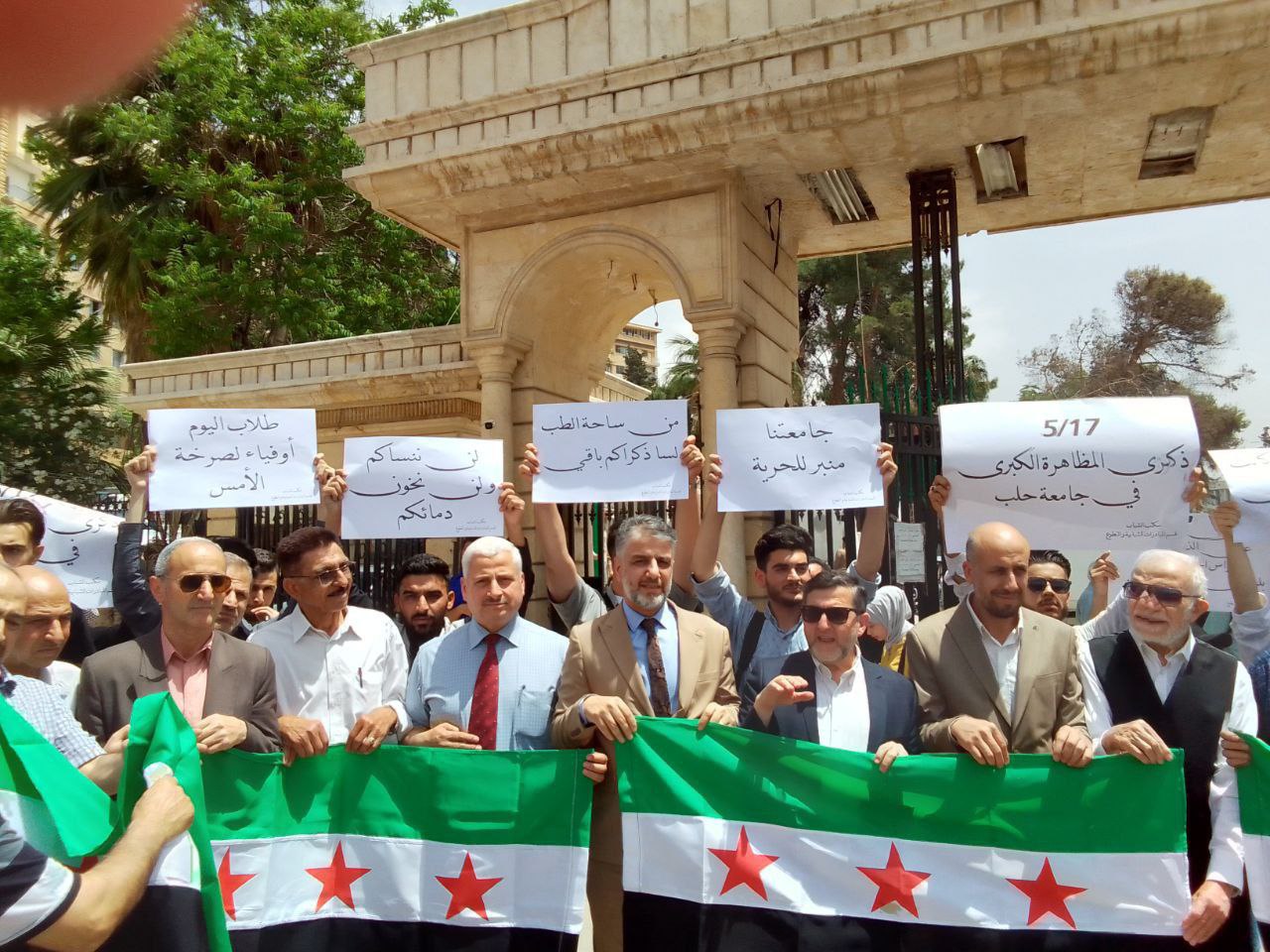 إحياءً لذكرى المظاهرة الكبرى التي شهدتها الجامعة ضمن الحراك الطلابي ضد ممارسات النظام البائد، وتكريماً للشهداء الذين ارتقوا دفاعاً عن حرية التعبير، نظمت جامعة حلب – مكتب الشباب، وقفة رمزية صباح اليوم في ساحة كلية الطب البشري.
