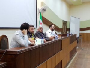أما المهندس عز الدين أبرم، منسق التخطيط الاستراتيجي في الدفاع المدني السوري (الخوذ البيضاء)، فقد تحدث حول دور الحراك الطلابي في جامعة حلب وسوريا عمومًا، مسلطًا الضوء على تأسيس “تنسيقيات الثورة” كإطار تنظيمي للحراك الطلابي. وأكد على أن عقد الندوة داخل حرم جامعة حلب يعيد إحياء مشاعر الفخر والانتصار، وأن الجامعات تشكل ركيزة لبناء أوطان حرة بعقول أبنائها.