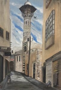 مبينًا أن اللوحات شملت حارات حلب القديمة الشعبية، مثل “السفاحية” و”جادة الخندق”، مجسّدًا فيها طقوس الحياة اليومية، إضافةً لضجيجها في مناطق أخرى، إلى جانب عرض عمل فني من القياس الكبير يتناول قلعة دمشق وما تعنيه من دلالات تاريخية.
