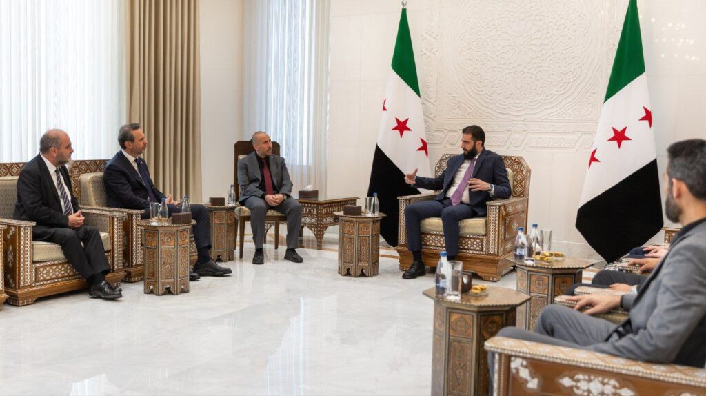 استقبل رئيس الجمهورية العربية السورية السيد أحمد الشرع، وزير الطاقة والموارد الطبيعية التركي السيد ألب أرسلان بيرقدار والوفد المرافق له في قصر الشعب بدمشق، وذلك بحضور وزير الطاقة السوري السيد محمد البشير