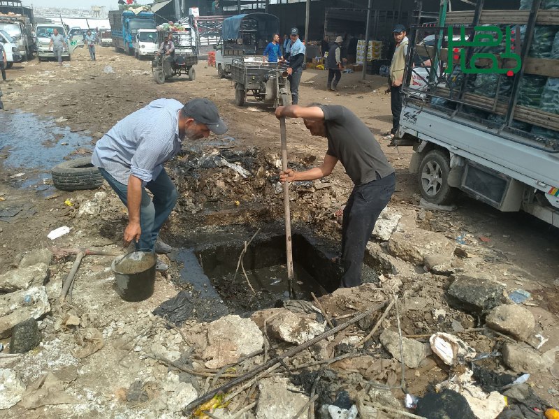 تحركت ورشات الصيانة التابعة لمجلس مدينة حلب اليوم، للعمل على إصلاح الخلل في تمديدات المياه أسفل الطريق ضمن سوق الهال في حي العامرية.