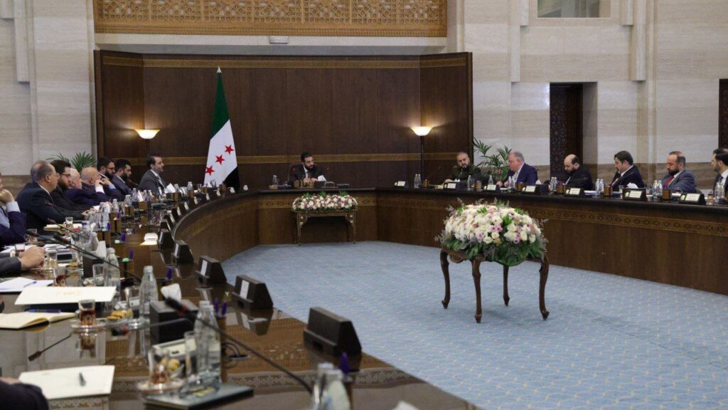 رئيس الجمهورية، السيد أحمد الشرع، يترأس اجتماعًا دوريًا لمجلس الوزراء، حيث استعرض السادة الوزراء آخر المستجدات والتحديات المتعلقة بالأداء الحكومي خلال الفترة الماضية، وبحثوا مع السيد الرئيس سبل تعزيز التعاون بين مختلف الوزارات، بما يحقق مصلحة المواطن، ويسرّع وتيرة تعافي البلاد وتقدمها نحو البناء والتطوير .