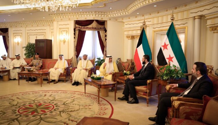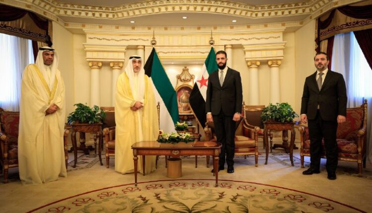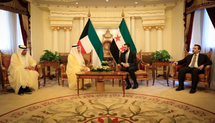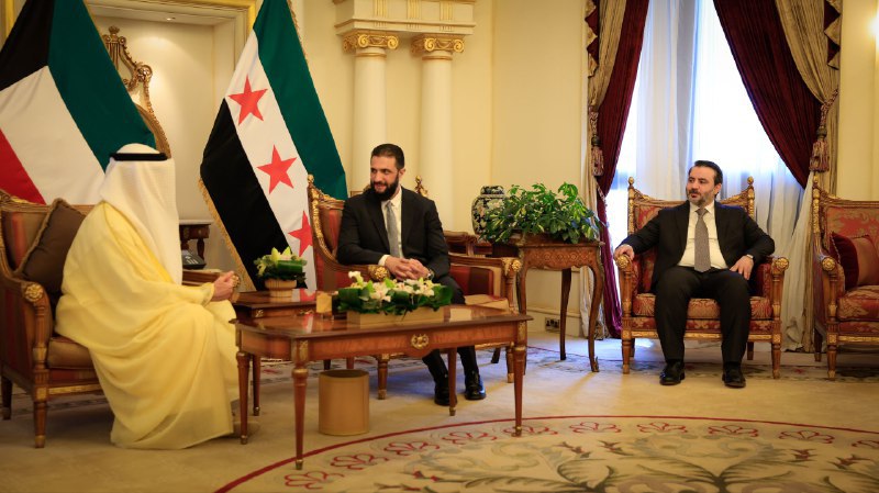 فخامة رئيس الجمهورية السيد أحمد الشرع يرافقه وزير الخارجية والمغتربين السيد أسعد حسن الشيباني، يلتقي نائب رئيس مجلس الوزراء وزير الداخلية الشيخ فهد يوسف سعود الصباح، ووزير الخارجية السيد عبد الله علي عبد الله اليحيا، في العاصمة الكويت لبحث سبل تعزيز التعاون بين البلدين