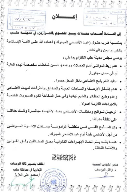 عمم مجلس المدينة قواعد الالتزام بإجراءات ذبح الأضاحي، لضمان السلامة والصحة العامة خلال العيد. وأكد على الالتزام والتقيد بالإرشادات لتحقيق مصلحة الجميع. محليات On يونيو 2, 2025 Share #صحيفة_الجماهير Share FacebookTwitterGoogle+ReddItWhatsAppPinterestالبريد الإلكتروني
