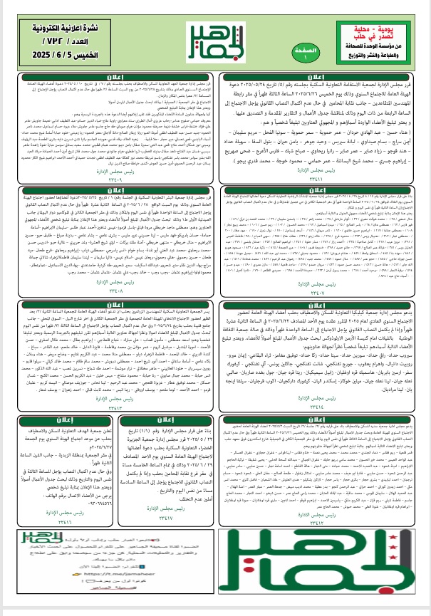 إعلانات الجماهير نشرة إعلانية الكترونية العدد رقم /732/ ليوم الخميس 5 – 6 – 2025 اعلانات On يونيو 5, 2025 Share Loading... Taking too long? Reload document | Open in new tab Share FacebookTwitterGoogle+ReddItWhatsAppPinterestالبريد الإلكتروني