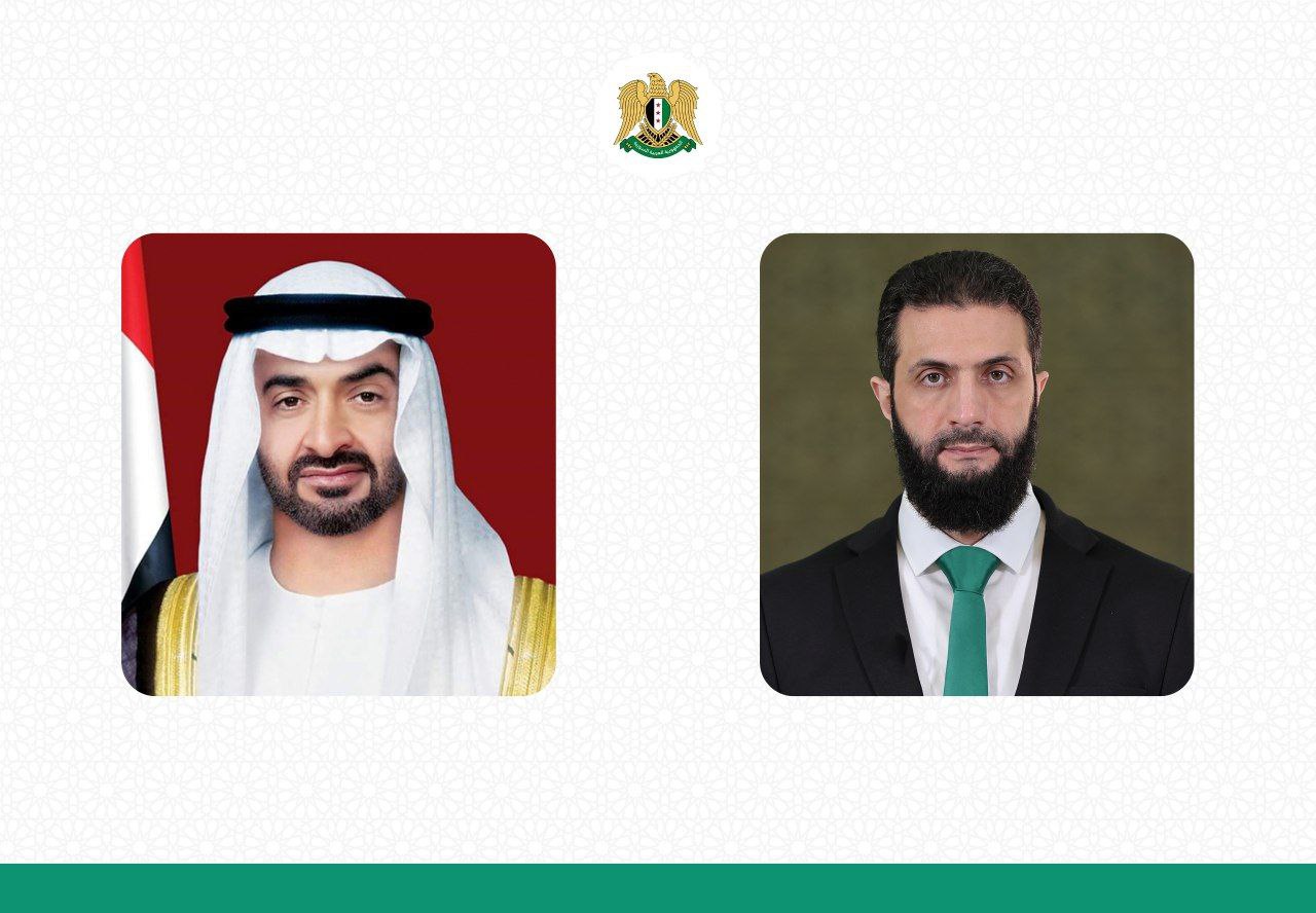 أجرى رئيس الجمهورية العربية السورية السيد أحمد الشرع، اتصالاً هاتفياً مع سمو الشيخ محمد بن زايد، رئيس دولة الإمارات العربية المتحدة، بمناسبة عيد الأضحى المبارك، حيث تبادل الرئيسان التهاني والتبريكات بهذه المناسبة، وتمنيا لشعبيهما دوام الخير والاستقرار.