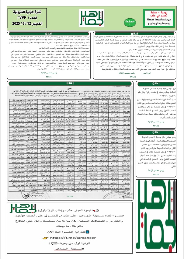 إعلانات الجماهير نشرة إعلانية الكترونية العدد رقم /733/ ليوم الخميس 12 – 6 – 2025 اعلانات Last updated يونيو 11, 2025 Share Loading... Taking too long? Reload document | Open in new tab Share FacebookTwitterGoogle+ReddItWhatsAppPinterestالبريد الإلكتروني