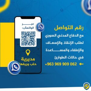 📞 عند نشوب حرائق أو وقوع أضرار بشرية أو مادية، يُرجى الاتصال بأرقام الطوارئ في الدفاع المدني السوري.