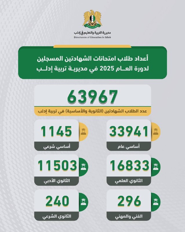 وأظهرت الإحصائيات الرقمية الصادرة عن المديرية أن عدد الطلاب والطالبات الذين سيتقدمون لهذه الامتحانات بلغ 63,961 طالبًا وطالبة، موزعين على النحو التالي: