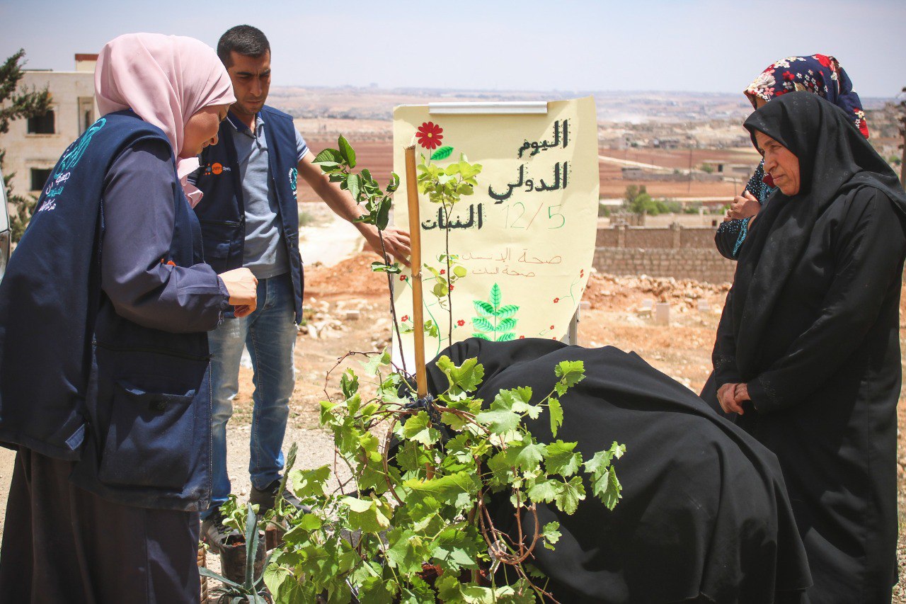 احتفالًا باليوم العالمي لصحة النبات، أطلقت جمعية الإحسان من خلال مركز دعم وتمكين المرأة في الحمدانية مبادرة مجتمعية مميزة في قرية مجبينة بناحية دارة عزة في ريف حلب، بهدف دعم السيدات العائدات إلى قريتهن، تجسيدًا لشعار السنة: “أهمية صحة النبات في إطار الصحة الواحدة”.