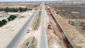 لتحسين انسيابية حركة السير على الطريق الدولي، تواصل ورشات العمل، برعاية إدارة منطقة إدلب، تنفيذ أعمال فتح وردم السواتر الترابية الممتدة على طريق M4 في منطقة النيرب – سراقب، والتي يبلغ طولها نحو 4 كيلومترات.