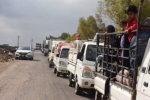قوافل تُقلّ عائلات البدو المحتجزة في مدينة السويداء إلى محافظة درعا، لتأمينها وضمان عودتها الآمنة إلى ديارها. خدمي On يوليو 21, 2025 Share #صحيفة_الجماهير Share FacebookTwitterGoogle+ReddItWhatsAppPinterestالبريد الإلكتروني
