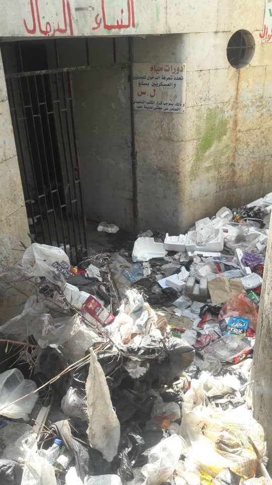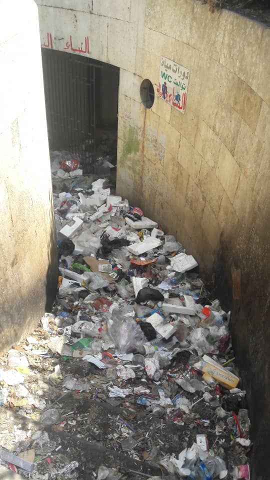 في مشهدٍ يعكس إهمالاً بيئياً وصحياً، تحوّل مدخل المرافق العامة في ساحة سعد الله الجابري بمدينة حلب إلى مكب للنفايات والمخلفات، وسط غياب أيّ حلول جذرية من الجهات المعنية.