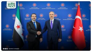 وزارة الخارجية: محليات On أغسطس 13, 2025 Share وزير الخارجية والمغتربين أسعد الشيباني برفقة وزير الدفاع مرهف أبو قصرة ورئيس جهاز الاستخبارات حسين سلامة يلتقون بوزير الخارجية التركي هاكان فيدان في مقر وزارة الخارجية التركية بالعاصمة أنقرة، لإجراء مباحثات في عدة ملفات مشتركة. #صحيفة_الجماهير Share FacebookTwitterGoogle+ReddItWhatsAppPinterestالبريد الإلكتروني