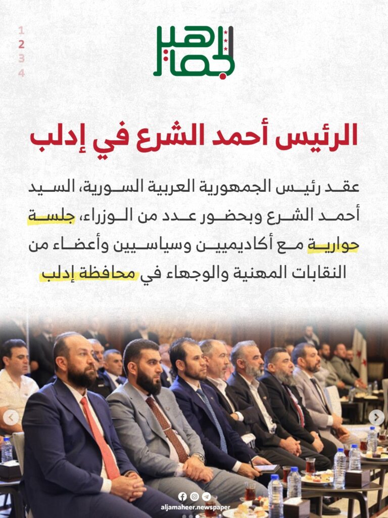 إدلب في قلب المشروع الوطني.. كيف كان لقاء الرئيس أحمد الشرع مع وفد الفعاليات المجتمعية في المحافظة وما أبرز مطالبهم؟ خدمي On أغسطس 17, 2025 Share Share FacebookTwitterGoogle+ReddItWhatsAppPinterestالبريد الإلكتروني