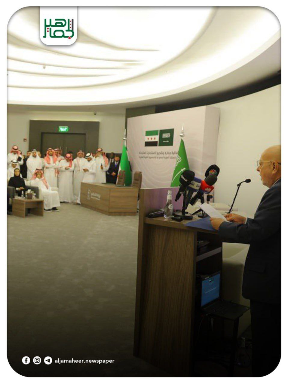 انعقاد اجتماع الطاولة المستديرة في الرياض بحضور وزير الاقتصاد والصناعة محمد الشعار ووزير الاستثمار السعودي خالد الفالح وعدد من المستثمرين ورجال الأعمال من سورية والسعودية. خدمي On أغسطس 18, 2025 Share #صحيفة_الجماهير Share FacebookTwitterGoogle+ReddItWhatsAppPinterestالبريد الإلكتروني