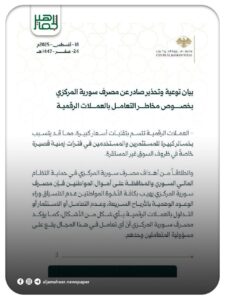📌يحذر المصرف من عمليات القرصنة التي تتم على هذه التعاملات.