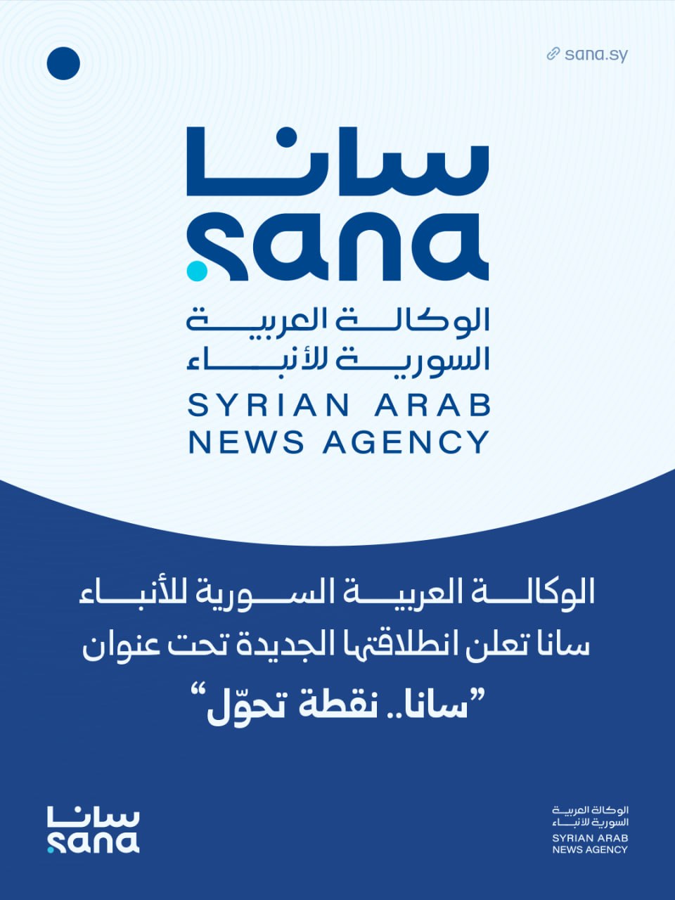 📌بدء فعاليات حفل الانطلاقة الجديدة للوكالة العربية السورية للأنباء، بحضور وزراء وممثلين عن البعثات الدبلوماسية العربية والأجنبية في سوريا، وعن اتحادات ونقابات ومؤسسات إعلامية محلية وإقليمية وعالمية، وشخصيات ثقافية وفنية، وذلك في المركز الوطني للفنون البصرية بدمشق.