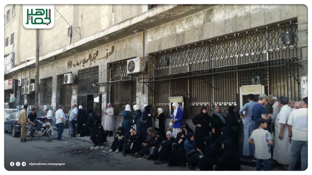 يشهد الصراف في فرع المصرف التجاري السوري بحلب ازدحاماً شديداً من قبل المتقاعدين، إذ يسمح لهم بقبض 200 ألف ليرة فقط من راتبهم من داخل البنك كل أسبوع، بينما يستطيعون قبض كامل راتبهم من الصراف محليات On أغسطس 20, 2025 Share Share FacebookTwitterGoogle+ReddItWhatsAppPinterestالبريد الإلكتروني
