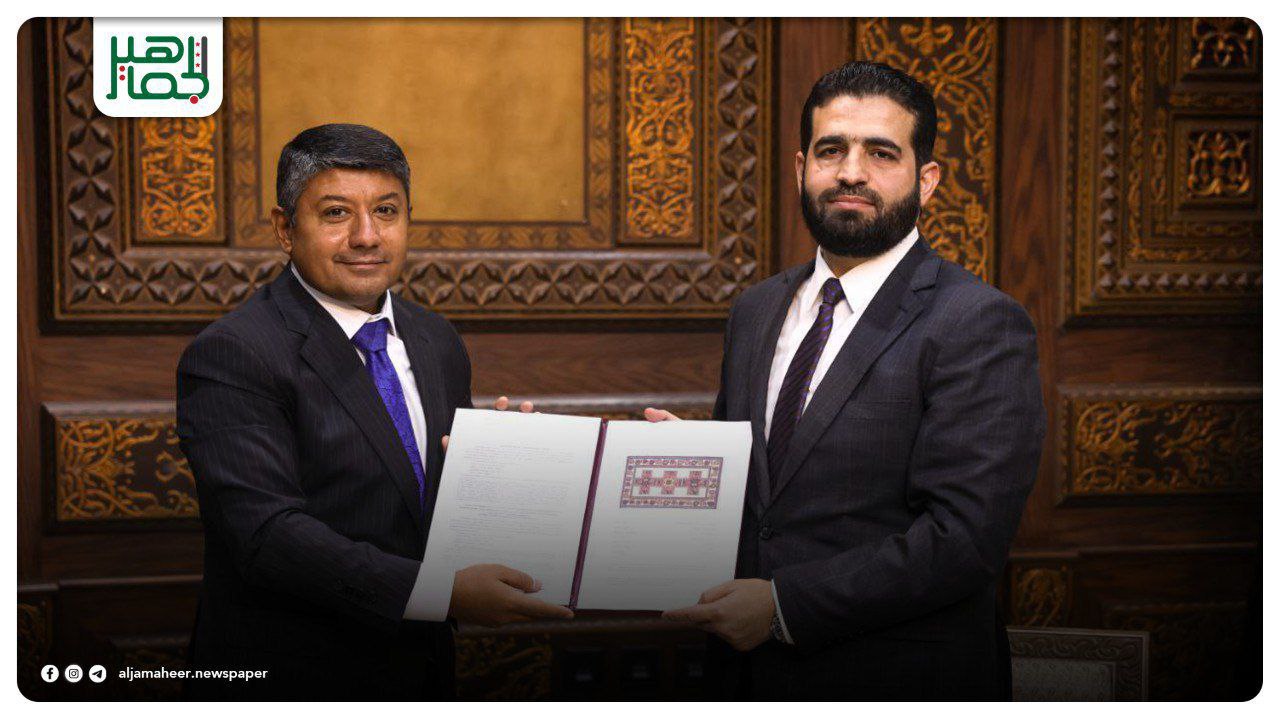 استقبل وزير الداخلية أنس خطاب في مقر الوزارة القائم بأعمال سفارة جمهورية أذربيجان في دمشق، ألنور شاه حسينوف. وبحث الجانبان خلال اللقاء آفاق تعزيز التعاون الثنائي بين البلدين، ولا سيما في المجالات الأمنية والشرطية وتبادل الخبرات، بما يسهم في تعزيز الأمن والاستقرار وتحقيق المصالح المشتركة للبلدين.