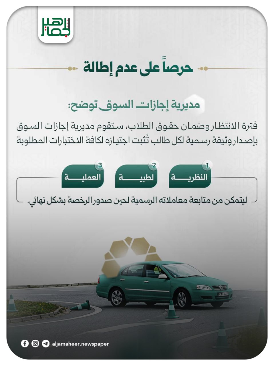 📌 التأخير الحاصل في إصدار رخص القيادة لا يرتبط بتحديد الجهة المسؤولة عن منح الرخص