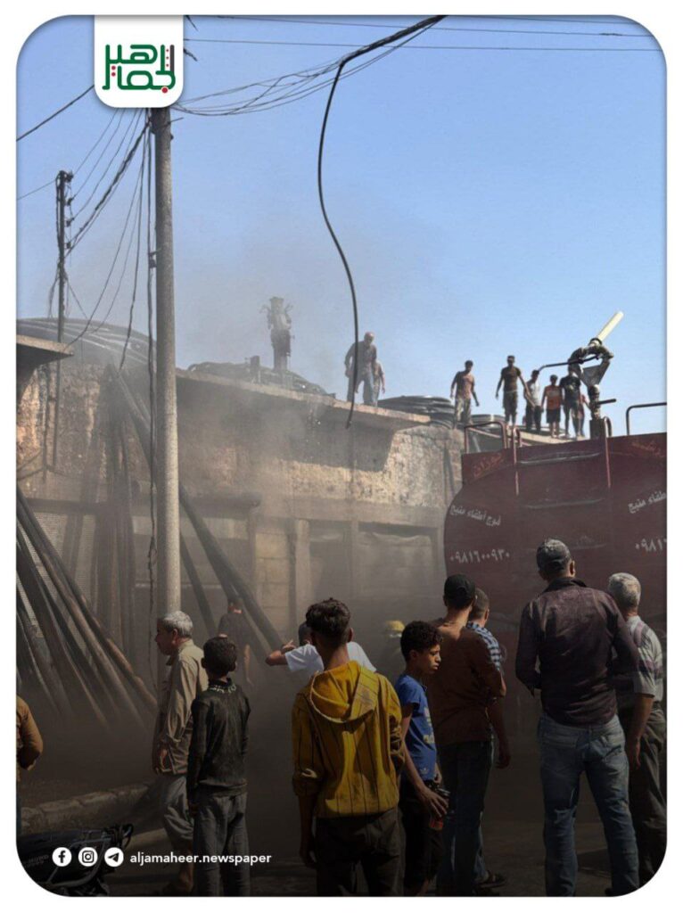 اندلع حريق كبير في المنطقة الصناعية شمال سوق الهال بمدينة منبج بعد ظهر اليوم، مما أسفر عن أضرار مادية كبيرة في معمل للخراطيم ومحل لبيع عمد الخشب، دون وقوع إصابات بشرية.