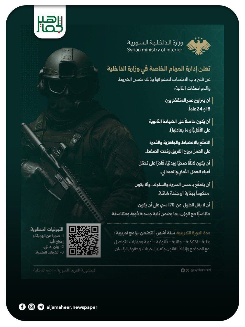 📌أن يكون لائقٱ صحيٱ وبدنيٱ، وقادرٱ على تحمل أعباء العمل الأمني والميداني.