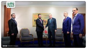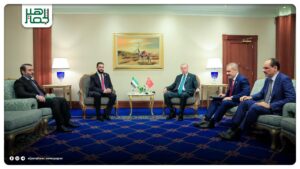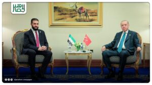 التقى رئيس الجمهورية العربية السورية أحمد الشرع، رئيس الجمهورية التركية رجب طيب أردوغان، بحضور وزير الخارجية والمغتربين أسعد الشيباني، وذلك على هامش أعمال القمة العربية الإسلامية الطارئة في الدوحة. أحدث الأخبار On سبتمبر 15, 2025 Share Share FacebookTwitterGoogle+ReddItWhatsAppPinterestالبريد الإلكتروني