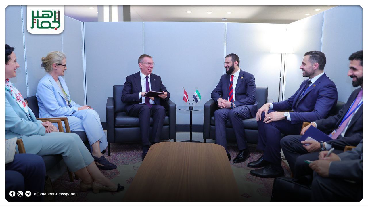 التقى الرئيس #أحمد_الشرع، مع رئيس جمهورية لاتفيا إدغار رينكيفيتش، وذلك على هامش أعمال الدورة الثمانين للجمعية العامة للأمم المتحدة في نيويورك. محليات On سبتمبر 25, 2025 Share #صحيفة_الجماهير Share FacebookTwitterGoogle+ReddItWhatsAppPinterestالبريد الإلكتروني