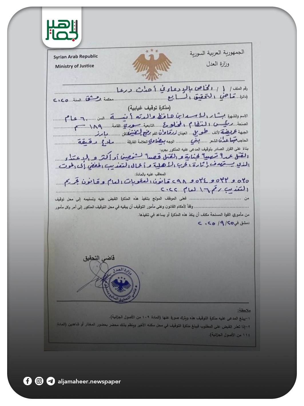 📌 إصدار مذكرة توقيف غيابية بحق المجرم بشار الأسد بتهم مرتبطة بأحداث درعا 2011.
