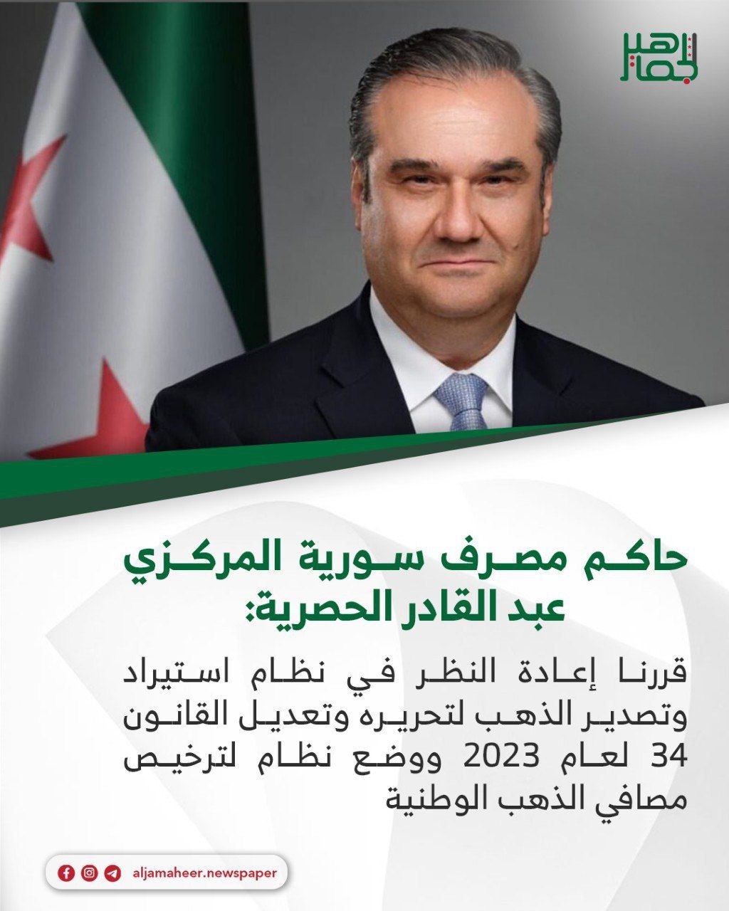 📌سيشرف مصرف سورية المركزي بشكل مباشر على تنفيذ الدراسة من خلال سجل وطني إلكتروني لتتبع الذهب ونظام ترخيص خاص بالمصافي.