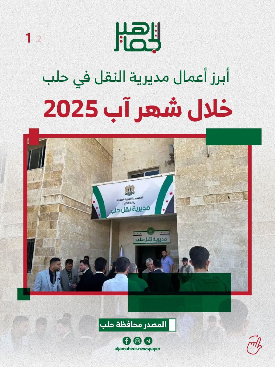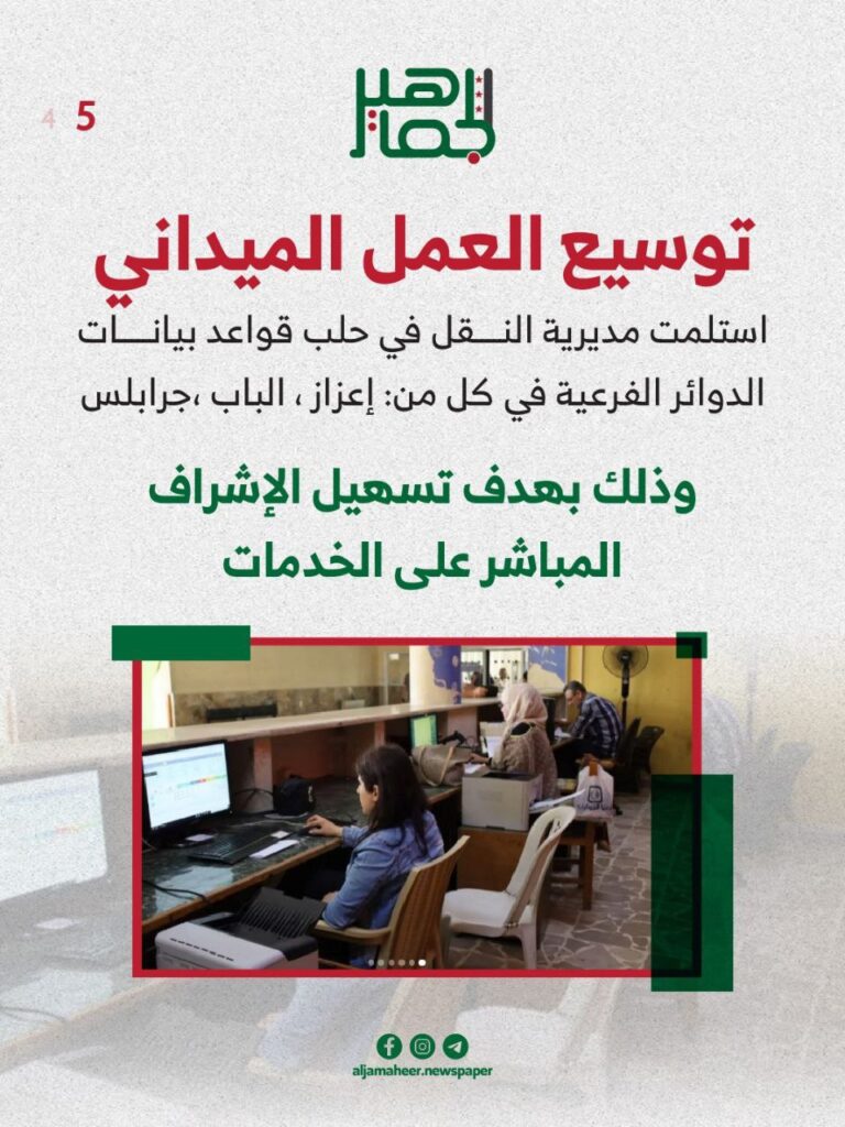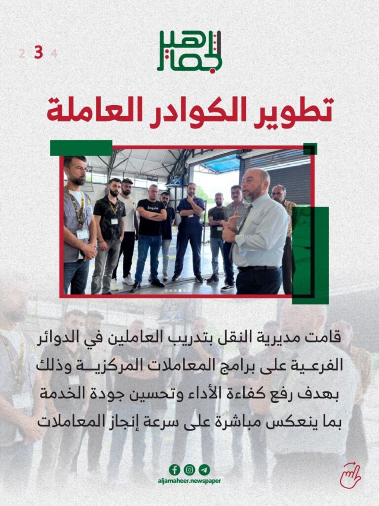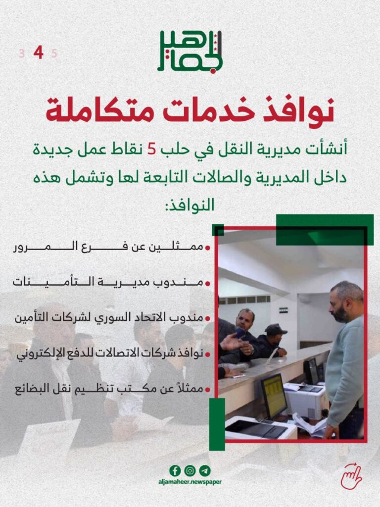 إنجاز أكثر من 10 آلاف معاملة.. أبرز أعمال مديرية النقل في حلب خلال آب الماضي خدمي On أكتوبر 15, 2025 Share Share FacebookTwitterGoogle+ReddItWhatsAppPinterestالبريد الإلكتروني
