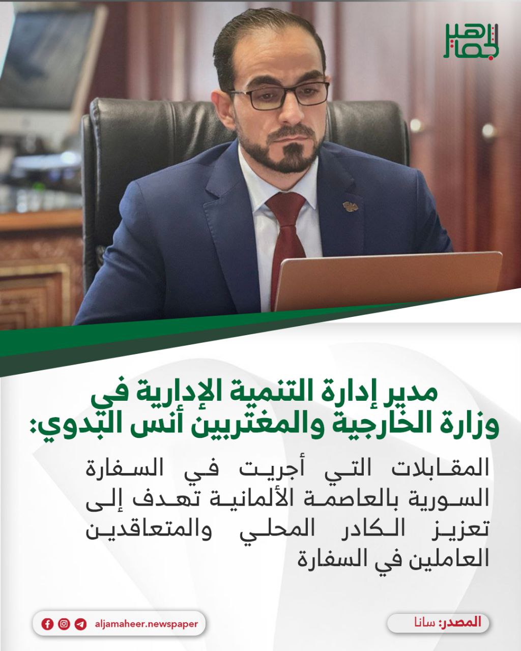 المقابلات التي أجريت في السفارة السورية بالعاصمة الألمانية تهدف إلى تعزيز الكادر المحلي والمتعاقدين العاملين في السفارة