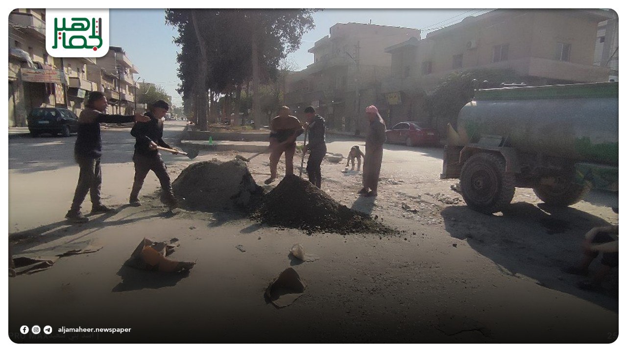 📌 بادر سائقو خط الشرعية في منبج بشكل تطوعي لإصلاح حفرة كبيرة على طريقهم، بعد أن تسببت بأضرار للمركبات وإعاقة حركة السير.