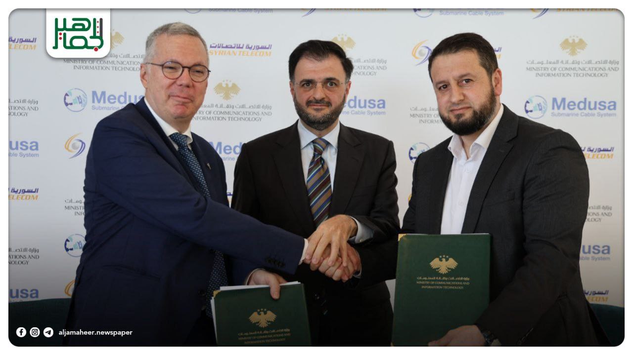 توقيع اتفاقية إنزال أول كابل بحري دولي في ميناء طرطوس بحضور وزير الاتصالات “عبد السلام هيكل” لتعزيز البنية التحتية الرقمية في سورية وتحقيق مركزية استراتيجية في مجال الاتصالات بين القارات.