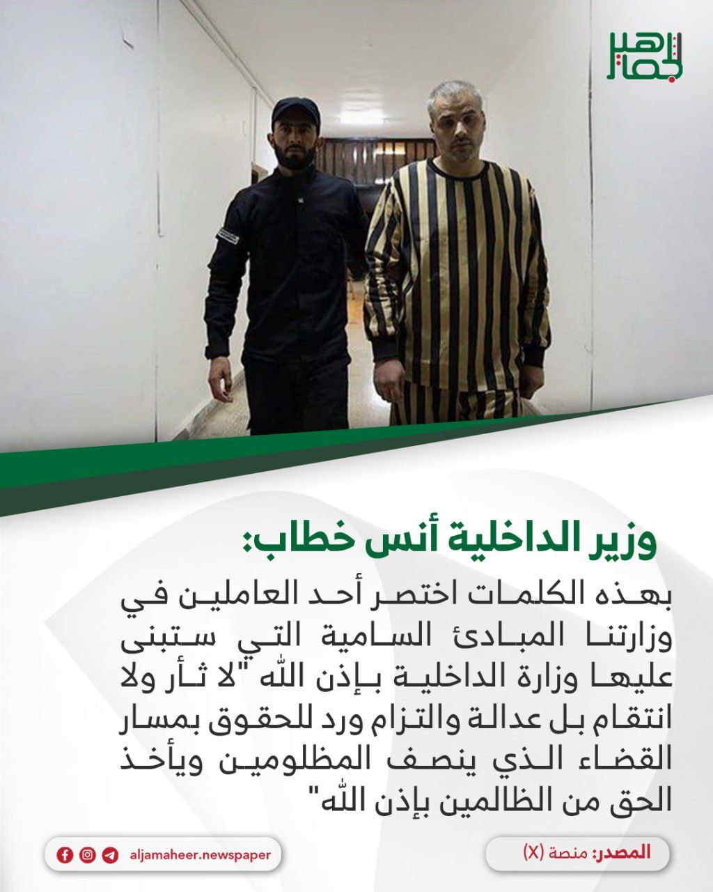 بهذه الكلمات اختصر أحد العاملين في وزارتنا المبادئ السامية التي ستبنى عليها وزارة الداخلية بإذن الله “لا ثأر ولا انتقام بل عدالة والتزام ورد للحقوق بمسار القضاء الذي ينصف المظلومين ويأخذ الحق من الظالمين بإذن الله”