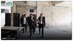 كما اطلع على أجزاء المبنى التي تعرضت للقصف من قبل النظام السابق وأصبحت خارج الخدمة جزئياً.