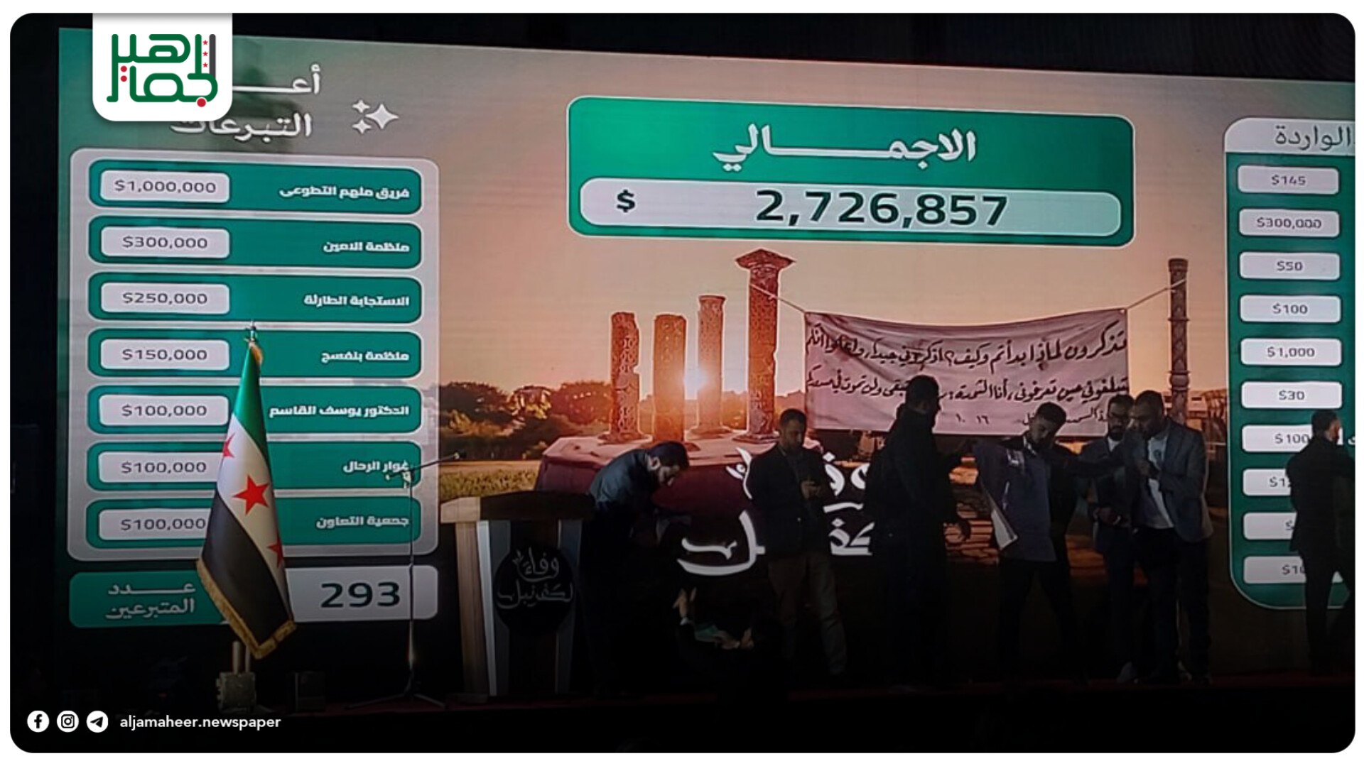 سانا: مجموع التبرعات لصالح حملة “وفاءً لكفرنبل” يتجاوز 2.4 مليون دولار. أحدث الأخبار On أكتوبر 31, 2025 Share Share FacebookTwitterGoogle+ReddItWhatsAppPinterestالبريد الإلكتروني