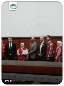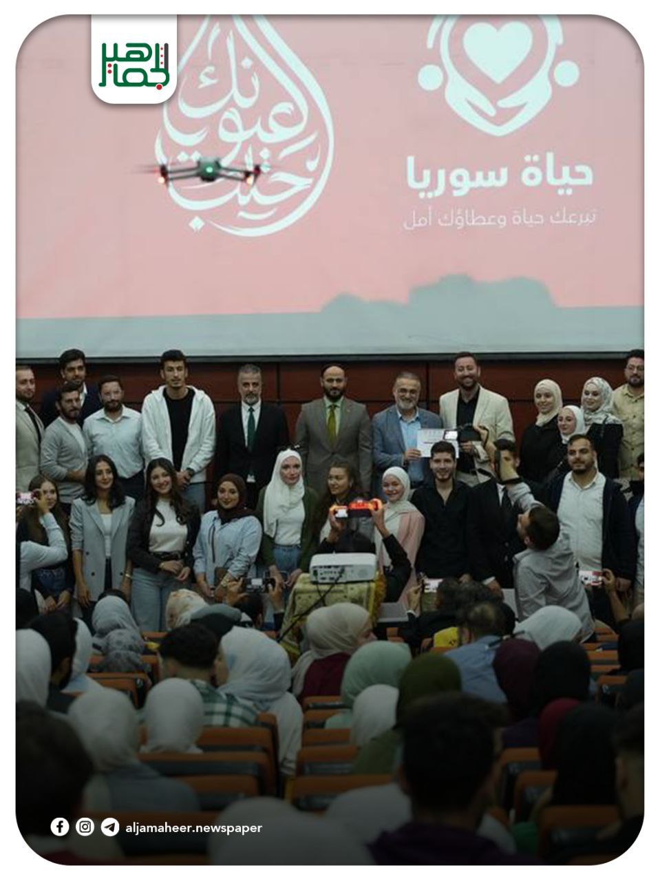 كرّم محافظ حلب عزّام الغريب على مدرج الطب الكبير في جامعة حلب المشاركين في حملة “حياة سوريا” للتبرع بالدم، تقديراً لعطائهم الإنساني ومساهمتهم في دعم العمل التطوعي وخدمة المجتمع.