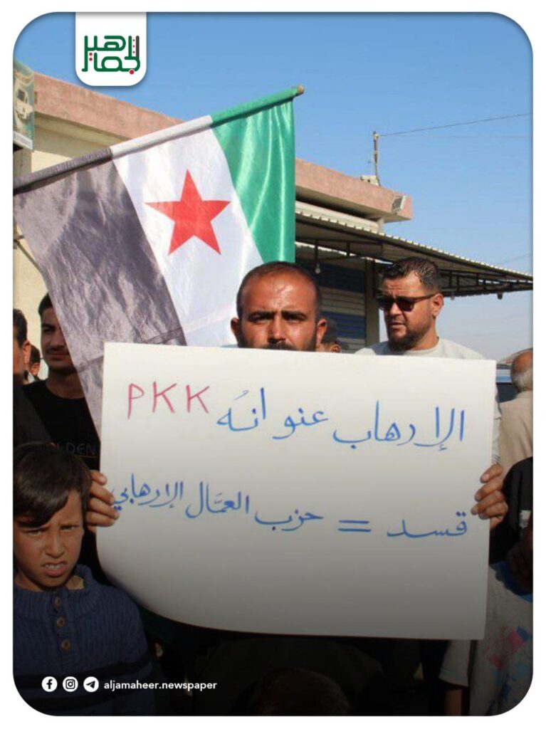 وحمل المتظاهرون لافتات تطالب بحقهم في العودة إلى ديارهم، محمّلين الجهات المعنية مسؤولية التحرك العاجل لإنهاء سيطرة “قسد” على المنطقة وتمكين السكان الأصليين من استعادة ممتلكاتهم.