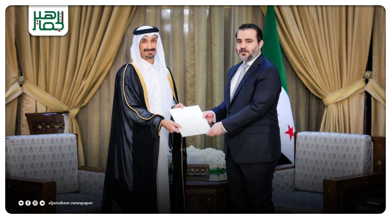 استقبل وزير الخارجية والمغتربين أسعد الشيباني السفير القطري في دمشق خليفة عبد الله آل محمود، حيث تسلّم منه نسخة من أوراق اعتماده سفيرًا لدولة قطر لدى الجمهورية العربية السورية. أحدث الأخبار On نوفمبر 19, 2025 Share Share FacebookTwitterGoogle+ReddItWhatsAppPinterestالبريد الإلكتروني