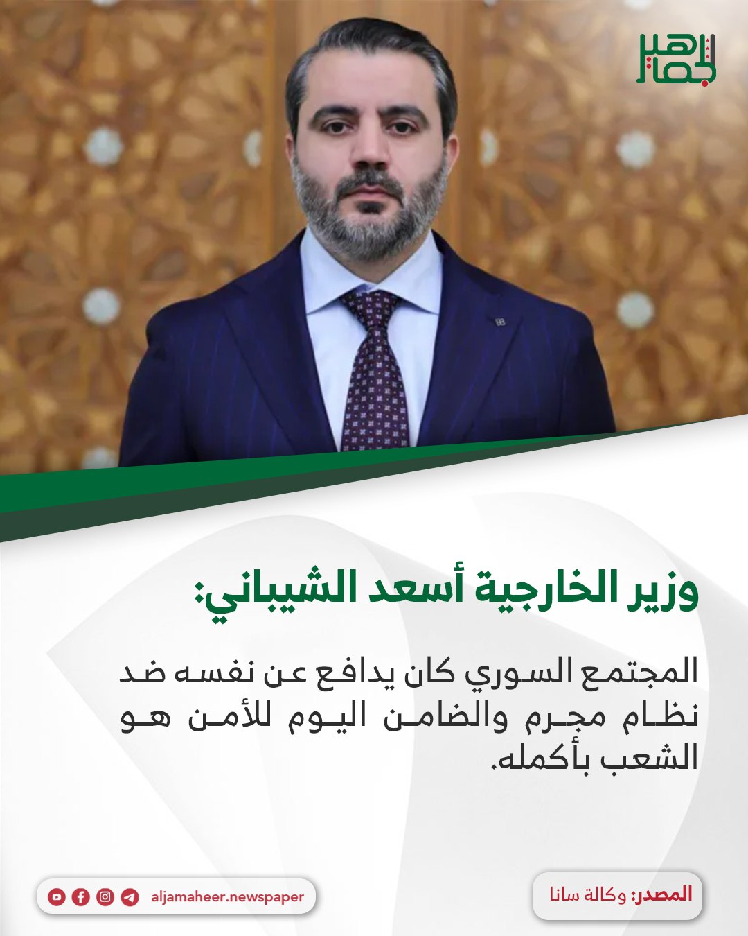 📌 المجتمع السوري كان يدافع عن نفسه ضد نظام مجرم والضامن اليوم للأمن هو الشعب بأكمله.