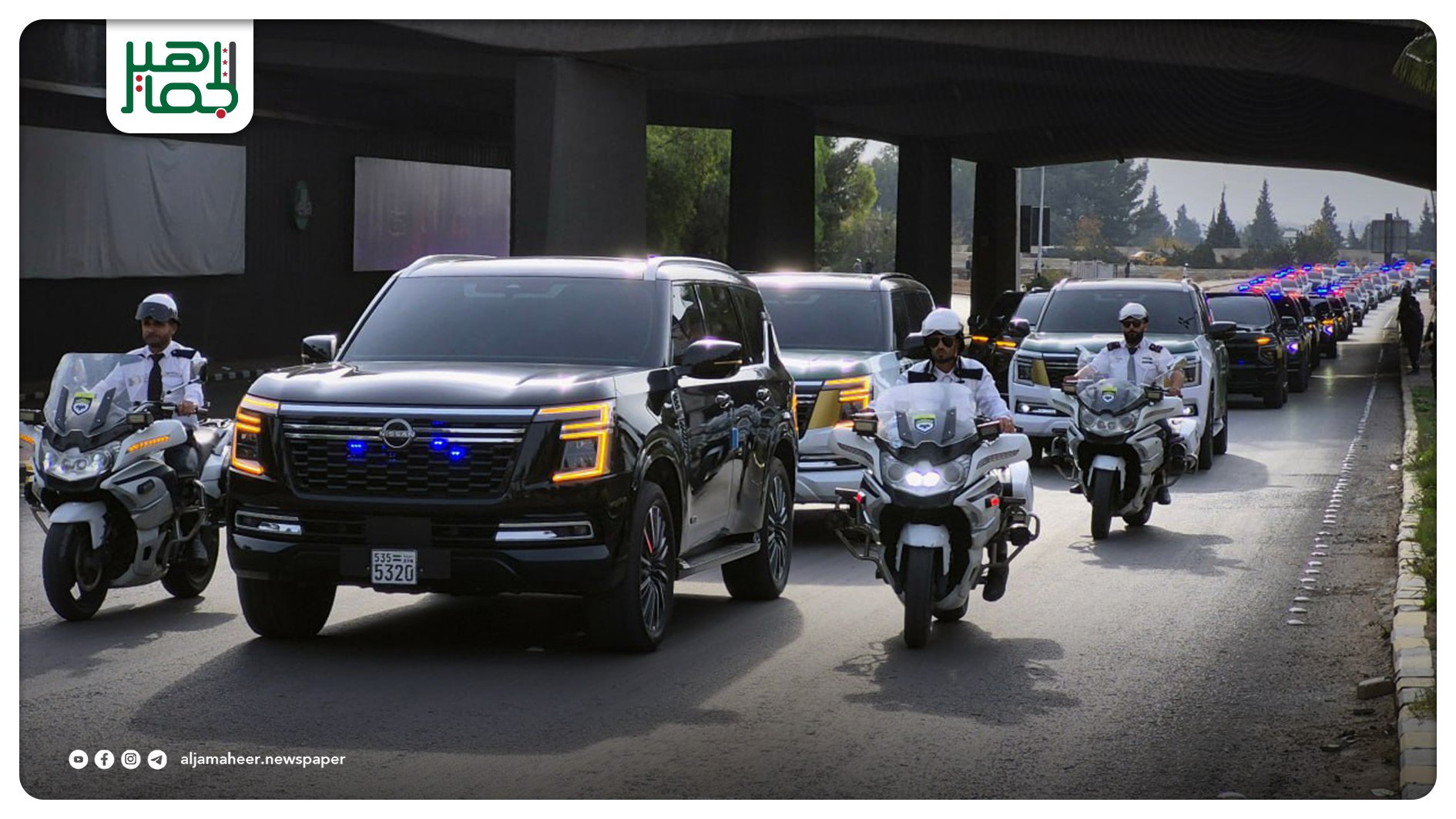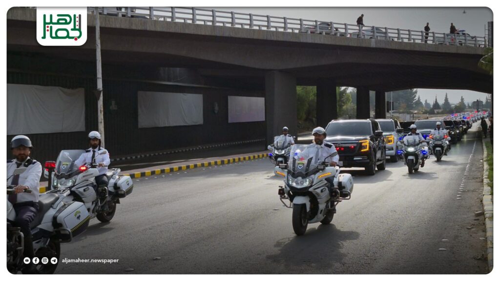 العرض الرسمي لعربات وزارة الداخلية بالهوية البصرية الجديدة الذي انطلق من أوتستراد المزة، مروراً بساحة الأمويين، وصولاً إلى دوار الكارلتون بدمشق خدمي On نوفمبر 29, 2025 Share 🔔 اشترك بقناة التيليجرام: https://t.me/jamaheer Share FacebookTwitterGoogle+ReddItWhatsAppPinterestالبريد الإلكتروني