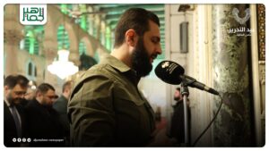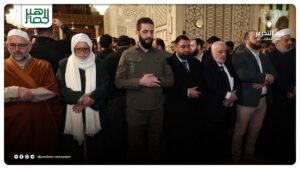أدّى السيّد الرئيس أحمد الشرع صلاةَ فجر اليوم الثامن من كانون الأول في المسجد الأموي بدمشق، وذلك في الذكرى السنوية الأولى لتحرير سوريا. خدمي On ديسمبر 8, 2025 Share #صحيفة_الجماهير Share FacebookTwitterGoogle+ReddItWhatsAppPinterestالبريد الإلكتروني