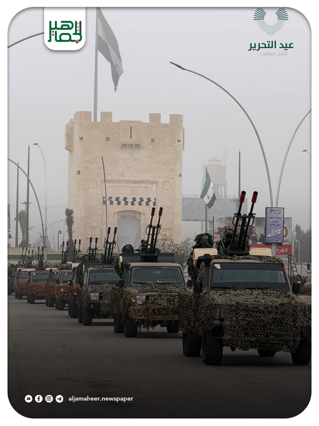 انطلاق مسير العرض العسكري لقوات وزارة الدفاع في شوارع مدينة حلب احتفالاً بذكرى التحرير. خدمي On ديسمبر 8, 2025 Share #صحيفة_الجماهير Share FacebookTwitterGoogle+ReddItWhatsAppPinterestالبريد الإلكتروني